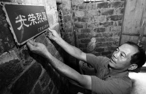 海口琼山区龙寒村抗美援朝烈士吴业忠之子吴田川,展示政府颁发的光荣烈属的牌匾。 海南日报记者 李英挺 摄