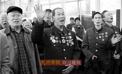 昨日,成都200多位志愿军老兵在塔子山公园相聚,回顾在朝鲜的烽火岁月,缅怀长眠在异国他乡的战友。