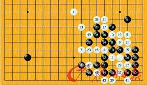比赛过程:我国手下至第33手,其实还是在布局阶段,使出“镇神头”的绝招,日本王子俯首称臣。