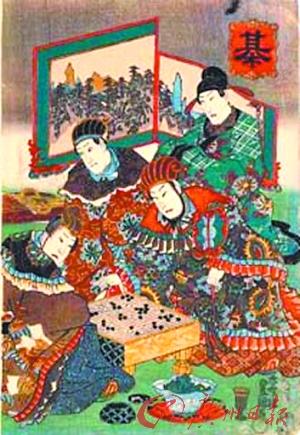 唐代棋手与日本棋手对弈。