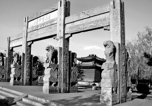 明代风格的牌坊现存“三世中丞”坊。此坊,据《正定县志》记载,原位于阳和楼南侧,跨街而立,是由真定府知府为通议大夫、都察院右副御史许瓒、许金、许守谦祖、父、子三人立的功德坊,老百姓都俗称“许家牌坊”。这座牌坊一度不知所终。2001年,重修南城门外护城河石桥时,被重新发现,移至隆兴寺龙腾苑内。许家牌坊全用淡青石料,四柱三间。柱为方柱,雕刻着官员、童子、祥云、瑞鹤、鲤鱼、花卉、瓜果等,玲珑剔透、活灵活现、细腻传神,雕刻精细但不绮靡,图画充盈但不俗滥。四根石柱两侧设夹柱石,最下层为须弥座,中层雕石鼓,上层八只神态各异的石狮相背而立,或顽皮可爱,或憨态可掬,代表了明代石狮雕刻的独特风格。主间大额枋高浮雕衣锦还乡图,刻画了威风凛凛的达官显贵浩浩荡荡回乡省亲的盛大场面,成为当时社会现实的形象展示。坊眼楷书“三世中丞”四个大字,结构严谨,笔锋雄健,力透石背。许家牌坊匾额、花版已失,少了精美繁复的纹饰,只剩下方方正正、中规中矩的大小额枋,甚至小额枋也仅存其一。删繁就简,这种残缺无意间造就了另一种美,一种返璞归真的美。