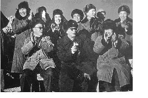 核导弹发射成功后,聂荣臻(前排中)、钱学森(前排右一)、李福泽(前排左一)等热烈鼓掌。