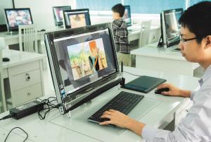 地方虽小,设备却很强大。据省动漫产业基地技术运营部经理冼国宝介绍,基地已经搭建起了公共技术服务平台,为入驻的企业提供专业电脑操作、录音服务等服务。“这些价值数百万元乃至上千万元的设备都是基地刚刚引进的,可以支持动漫创作所需的庞大数据库。”目前,基地为入驻企业提供技术支撑服务的设施包括:摄影系统、动作捕获系统、二维制作系统、三维制作系统、渲染系统、教育培训系统、维护系统、非编系统、动画制作办公系统等。