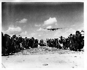 压题图片:1944年3月31日,一群民工奋力拖拉一个巨石碾子磙过跑道,用血肉之躯铺筑通往民族解放之路。 章东磐