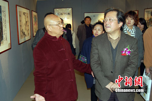 中新网11月13日电(蒲波) 13日,美国草堂寺住持、美国国际美术家协会会长、国际佛禅书画名家李雄风佛心丹青缘公益书画展在北京开幕。李雄风表示,计划将此次所得义款全部捐赠用于西安草堂寺八百亩世纪重建工程。