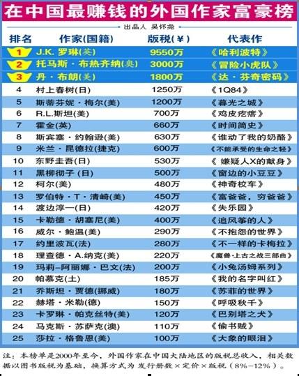 港澳台作家在大陆的版税收入,第一次被纳入榜单,同时我们第一次推出全新子榜单《在中国最赚钱的外国作家富豪榜》,对比两份榜单,结果触目惊心!
