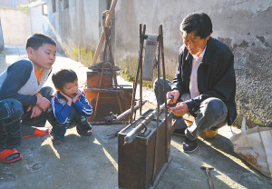 修铜锁,制铜壶,配铜把手……老铜匠的手艺活让孩子很是好奇。