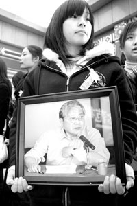 同学们连夜赶制了一份12版的“范敬宜纪念特刊”,今天拿到八宝山殡仪馆,一部分赠送给在场的人们,一部分随“范爷爷”火化。“用范爷爷生前最心爱的东西祭奠他,我想这是最好的方式”。