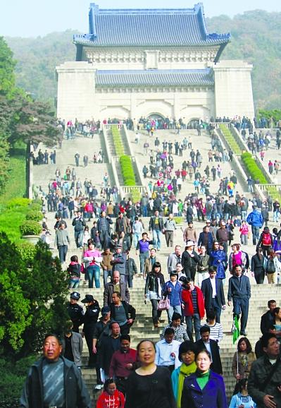 中山陵免费开放10天来,客流量已突破50万。而收费期间,每天客流量不过6000-7000人。中山陵园管理局张主任告诉记者,通过对免费开放以来客流量分析发现,客流1/3是大学生,南京周边扬州、无锡、镇江的大学生周末经常包车来游玩;21号来说,扬州的大学生一下子包了5、6辆大客车来中山陵玩。此外,马鞍山、滁州的也不少。1/3是本地人,免费开放首周本地客流量未全部释放,上周末客流量更是突破免费开放后首周客流;1/3是团队游客,自玄武湖、中山陵先后免费后,对周边游客的拉动也很明显。加上高铁的开通,现在每天都有很多游客从无锡、苏州、杭州等地赶来。