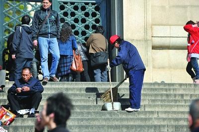 中山陵陵寝免费开放10天了,数据很惊人:10天内,客流量突破50万!平均下来,每天中山陵都要接待“超限客流”,可真是够“疲劳”。昨天星期一,是例行维护的日子,景区用什么样的办法来给“累”了一周的中山陵景区“按摩放松”呢?本报记者昨天特地去中山陵,感受了一下今后将每周一次的“大修”。