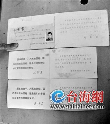 日前,在泉州惠安县涂寨镇惠安四中当保安的骆建平,整理父亲遗物时,意外发现了3张请柬,内容是毛主席邀请其父亲骆碧南到北京参加国庆20周年庆典观礼,周总理并邀请其赴国宴。