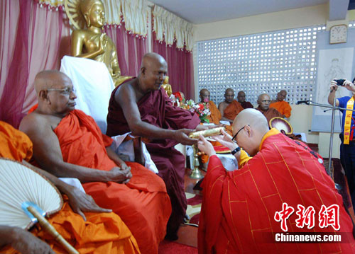 中新网福州12月6日电 (记者 陈国明)记者6日此间获悉,福建连江宝林禅寺住持悟演法师日前在斯里兰卡获斯里兰卡友好比丘协会颁发的“SRI SADDHARMAGOSHA”(圣妙法音)荣誉称号。这是斯里兰卡佛教僧团公认的大奖。