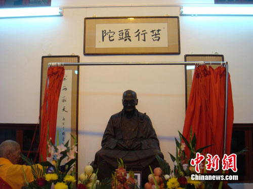 当天上午,来自新加坡、香港、台湾以及大陆各省市的信众和嘉宾齐聚一堂,参加庆祝活动。台湾恒光禅寺代表传平法师、新加坡毗卢寺住持慧雄法师、台湾中国佛教会理事贤明法师等共同为广钦老和尚铜像揭幕。