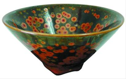 铁红金圈结晶釉斗笠碗