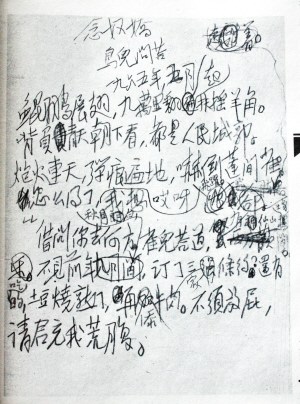 记者在覃兆刿家中看到,《毛泽东诗词手迹》共收入毛泽东46首诗词的手迹112篇,多数为书法之作,少数为手稿。其中一些手稿,生动地反映了其诗词创作的过程,是一窥主席内心世界的原始依据。如著名的《念奴娇·鸟儿问答》,手稿与最终发表稿差别很大。例如最后一句,初稿为:不须放屁,请君充我荒腹。而最终发表则为:不须放屁,试看天地翻覆。覃兆刿解释说,毛主席用字十分慎重,面对国际政治强敌和国内贫困环境,主席内心异常清醒;一些字词的改动,既能反映主席对国内形势所具有的内心压力,对人民生活疾苦的切肤之痛的领袖情怀,又能反映在国际政治中的睿智策略。
