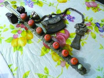 清代藏族珊瑚七星刀筷