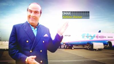 1972年出版的《2010:未来生活》预言了低价飞行。图为2010年12月25日晚BBC-1开播的电视喜剧《跟我一起飞》(Come Fly with Me),大卫·威廉斯在剧中扮演了廉价航空公司“飞低”(FlyLo)的老板奥马尔·巴巴。