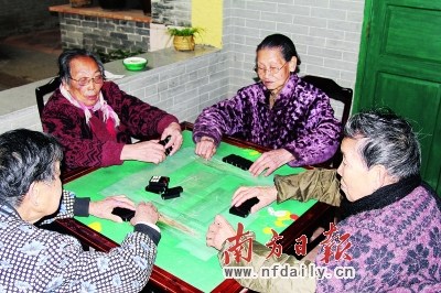 打“天九”是姑太们现在最喜欢的娱乐。