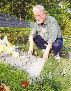 重庆晚报讯 昨日下午,南山空军坟。来自广东省中山市、70岁的赵树森顶着烈日,蹲在南山空军坟抗战英烈赵凤岐的墓碑前,泪流满面,哽咽着为父亲拂去墓碑上的落叶。看到重庆晚报《南山空军坟英烈牺牲时间“被提前”11年》的系列报道后,此次,赵树森专程来渝寻父。