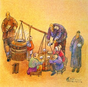 1962年出生的杨信,恰恰是“胡同母亲”奶大的孩子。长大后他没有忘记反哺,用一支画笔不倦地描绘他的“母亲”,他的家,他的童年往事以及老北京往事。人们将他的画作命名为“京味”,也称其为民俗画家,其实,他不过是“胡同母亲”的孝顺儿子,老北京历史文化的一位痴迷者而已。