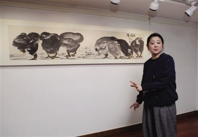 看着自己的画,倪萍禁不住手舞足蹈地介绍起来。本报记者 孙纯霞 摄