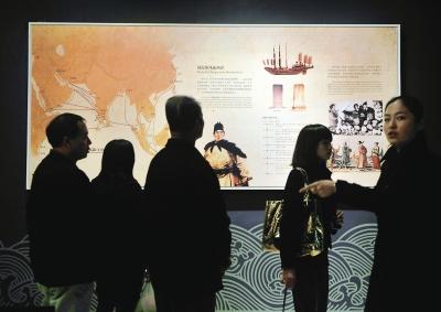 游客在福建省博物馆内,了解郑和下洋的福州史