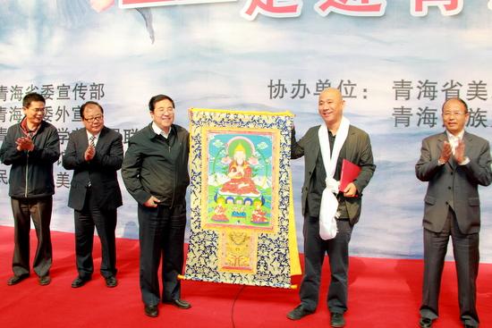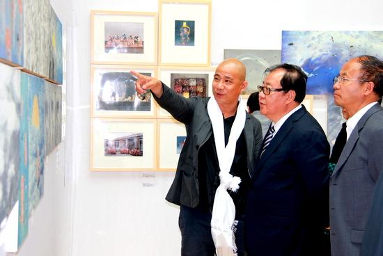 方力钧受聘为青海民大教授 吉狄马加参观文献展