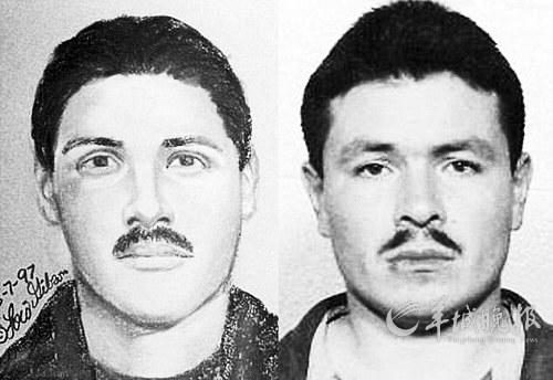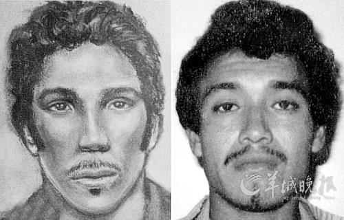 吉布森根据受害者回忆和描述画的嫌犯肖像画和真人照片对比