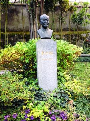 花园中伫立着一尊华印椿先生雕像