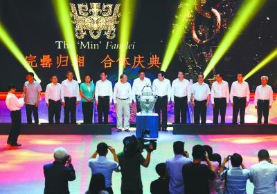 湖南省委书记徐守盛,省长杜家毫和国家文物局领导一起抬起皿方罍盖放进皿方罍身中,完成了“完罍归湘”使命。
