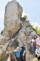 著名学者殷宪(左三)与忻州学者任复兴(右三)、高爱辰(左二)、马新民(左一)、任补花(右二)、张伟在七岩山摩崖碑下合影。 本报通讯员摄