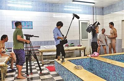 ▲德国电视2台来采访的主持人也体验了一把中国人的澡堂子