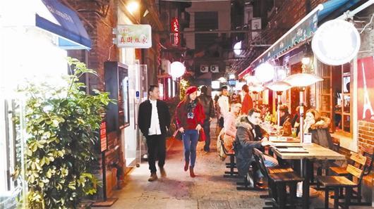 楚天都市报讯 图为:夜色下的田子坊老弄堂