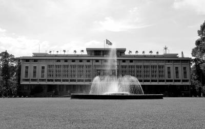 独立宫最早建造于1868 年,是一座法国古典主义建筑,由当时的越南南部总督拉格兰蒂耶兴建,取名为“诺罗敦宫”,实际上也是法国在整个印度支那地区的总督府。不过,今天人们看到的独立宫是个方盒子,并没有西洋建筑特有的优美线条,从平面图上看,大楼呈现出汉字“吉”的造型,而从立面来看,则呈现了繁体汉字“興”的造型。