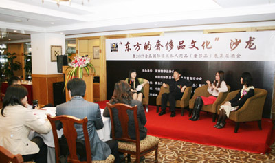 中新网4月10日电 4月8日下午,“东方的奢侈品文化”沙龙活动在北京长安俱乐部举行。本次活动由亚洲奢侈品协会、中国国际贸易促进委员会青岛市分会共同主办,青岛招商国际展览有限公司承办,中国顶级私人收藏杂志---香港《中国味》杂志特约支持。香港通天艺国际投资集团董事局主席兼总裁蔡洁应邀担任本次活动的主持人。