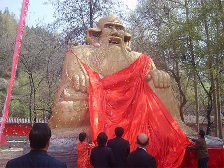 4月17日上午,在绿意葱茏的安宁堡仁寿山下,老子像及《道德经》碑廊揭幕仪式隆重举行。覆盖在高6.9米、重60吨的老子像体上的红绸布一经揭开,立刻引起了省内外游客和现场观众的惊叹和欢呼。据了解,为弘扬中华文明的传统美德,搞好仁寿山的文化旅游资源开发,安宁堡村民筹集资金逾300万元,对仁寿山风景区进行了大力包装,整修了寿山大道,雕塑了老子像和《道德经》碑廊,并开辟出了环境清幽的老子文化广场。斥资20余万元雕刻而成的老子像成为我省目前最大的老子雕像。