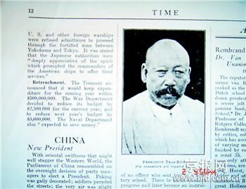 不知《时代》在1923年,为何没有把一代枭雄曹锟率先选为封面中国人物。