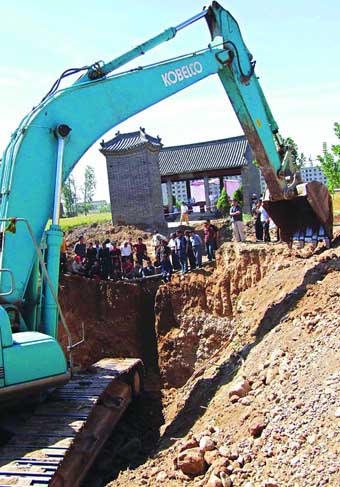 中新网6月6日消息:自5月16日以来,河南省焦作市中站区东王封村因为发现元代古墓群而备受文物界关注。这个有700多年历史的古墓群的主人是忽必烈御医靳德茂及其子孙。但是,目前挖掘古墓群的人既非考古人员,亦非盗墓贼,而是靳家后人。他们为何自掘祖坟?靳家后人的理由是:政府要在这里规划工业区,但是没有进行文物勘探,我们自掘祖坟的用意是希望政府更改规划,对此古墓群进行保护。