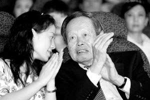 进入影院大厅后,杨振宁夫妇和范曾先生并排而坐,他们只是间或凑在一起小声地说着什么,并没有其他什么举动,就像一对普通的夫妻来电影院看电影一样。