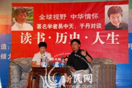 15日14时,著名学者易中天、于丹在上海书展7楼大型活动馆展开对话,新民网现场图文报道且实时发回最新的图片及文字。