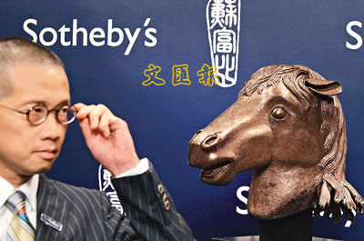 苏富比拍卖行定于10月9日在香港会展中心举行名为“清宫遗珍”和“玲珑绮秀——私人收藏清代御制瓷器工艺珍品”的两场专题拍卖,拍品总数超过200件。其中最大焦点莫过于这尊马首铜像。