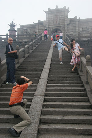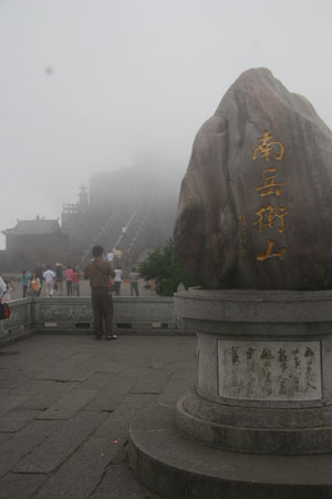 中新网9月13日电 “魅力湖南•2007中国网络媒体湖南游”大型新闻采访团一行十三日来到南岳衡山,一下车,便直奔南岳最高峰——祝融峰。