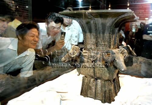参加《首届海峡百姓论坛》的台北县许姓宗亲会理事长许钦琳对记者说:“看过之后很惊叹,虽然只有50多件国宝,但有些比我在台北故宫博物院看到的还要珍贵,像四羊方尊、虢季子白盘,这些都是中华民族文化的瑰宝,也是两岸人民共同拥有的宝贵遗产。”(记者 吕路阳/文 杨婀娜/摄)