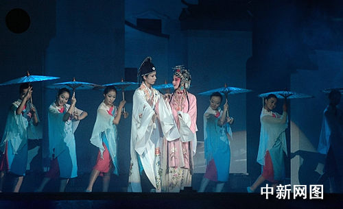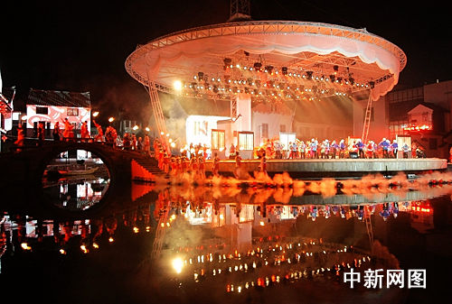 中新网苏州9月26日电 题:中国首部水乡实景演出周庄首演 海内外游人看戏过中秋