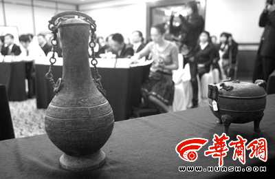 昨日,记者在“2007陕西秋季文化艺术品拍卖会”新闻发布会上获悉,10月27日,我省将在西安拍卖406件(幅)名家字画、文物等参拍品,拍卖估值3000万元左右,其中西周时期的青铜龙纹三足鼎等6件文物是海外回流文物。此次拍卖联合了省内6家骨干拍卖企业,拍卖品种类之多,质量之高,我省首次,全国罕见。
