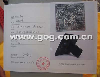 据介绍,这枚夜郎王印是镇宁县苗族同胞祖祖辈辈相传的祖物,而“掌握”这枚“夜郎王大印”的是一位自称为夜郎王“多德”的第75代子孙苗族老人。大印印面为方形,边长为5.5厘米,厚1.5厘米,高3.8厘米。王印印面下方左右有“多德”二字;上下各有两个“王”字,印中间有个似人非人的“蝴蝶”图案;28个圆圈符号围绕着“蝴蝶”;由夜朗王为中心引出长长短短的线条。2007年5月此印经原北京市文物局研究馆员、从事文物鉴定38年的孙晓虹专家鉴定为汉代合金铜铸文物。