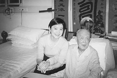 金秋北京,秋高气爽。那天下午,我陪着林青霞以及金圣华夫妇驱车来到301医院。因为事先季老助手杨锐女士已经为我们的来访办好了手续,所以这次进入季老病房比较顺利。我曾经想像过这次美女与大师的忘年会晤,会是多么的不同寻常,可是此刻映入眼帘的,却是常见的极为普通的一次病房探视。这天季老端坐在病床上,神态比我去年看望他时似稍显迟缓,但气色、精神都很好。为了靠近与季老讲话,我们把房间内的座椅都挪近病床。当林青霞与季老握手时,我对季老说:“您知道吗?她就是台湾的影星林青霞。”季老面带笑容回答:“全世界都知道。”这句话引得在场的人都笑了,原来季老对演艺圈也并不陌生。林青霞来京前,特意在香港买了一条米色羊毛围巾带来赠送季老,此时她亲手给季老围上这条围巾,这个场面引得我们连忙不停地闪光照相。随后我向季老介绍,林青霞现在对文学的兴趣增强,也热心在写文章。林青霞接着对季老说:“我读过您写的文章,您说要多读世界文学名著,我现在就是尽力多读。”季老一听连说:“这样很好。”