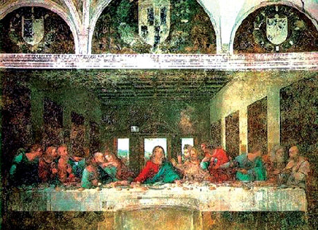 《最后的晚餐》是达·芬奇的代表作。作品题材取自圣经故事:叛徒犹大告密,基督在即将被捕和钉死在十字架前,与十二门徒共进晚餐,席间基督镇定地说出了有人出卖他的消息,此话引起众弟子的骚动,每个人都对这句话做出了富有个性的反应,有的向耶稣表白自己的忠诚;有的义愤填膺要求追查;有的大惑不解询问究竟。达·芬奇此作就是基督说出这一句话时的情景。
