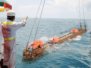 据介绍,在能见度几乎为零的31米水深处进行“海底穿梁”,史无前例,难度相当大。交通部广州打捞局克服海底含沙泥层阻力大和作业现场浪涌大等种种困难,不断创新工艺,优化工序,用了2016班次水,顺利、安全地穿过36根底托梁。