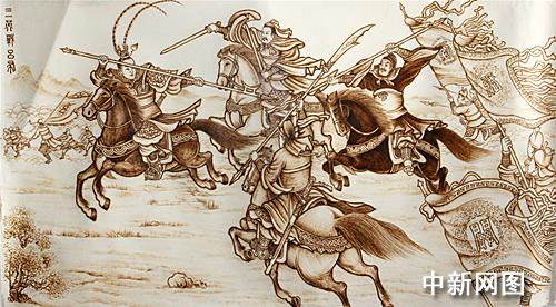 中新网唐山12月12日电(张森 胡琳泊 陈国林)用电烙铁在宣纸上做画,曾是河北省迁安市农民王国栋几年前创造的奇迹。日前,在当地有“铁笔书生”、“农夫铁笔”之称的王国栋再创奇迹,用总长近500米的电烙画卷演绎中国四大古典名著,创作历时五载,从创作技法到表现形式,均堪称华夏第一。王国栋在接受记者采访时表示,准备明年奥运会期间到北京办个展,让外国人看看地地道道的“中国玩意儿”。